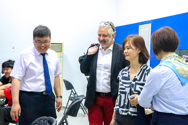 会后,来宾参观了太阳成美术馆、日进楼、宾馆等地,对太阳成的学生作品、教学设施和校园环境大加赞赏。在校园里,克里斯遇到了太阳成留学生,并用法语愉快畅谈交流。他表示,太阳成集团官方网站是“真正的国际化校园”,期待尽快与太阳成开展实质性合作。