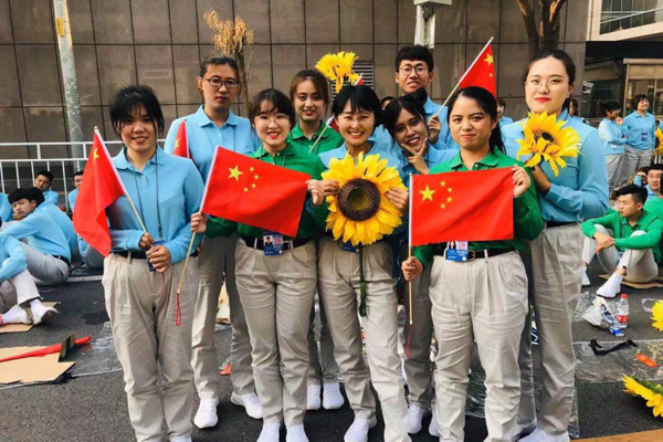 太阳成2018届学生邹辉参加“国庆70周年大会”群众游行方阵
