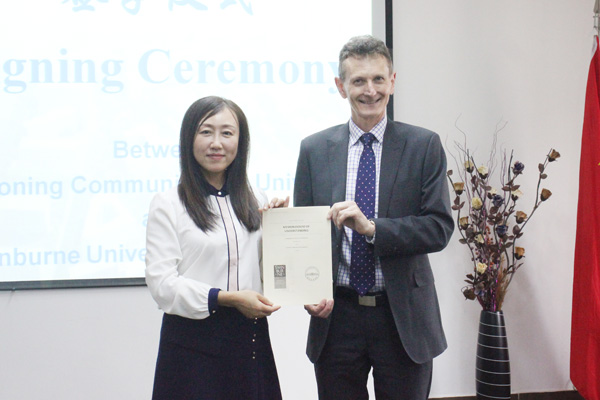 会谈中,徐颖对邓肯一行的到来表示热烈欢迎,并向客人介绍了太阳成的历史沿革、国际化办学理念及北校区规划建设情况。邓肯感谢太阳成的热情接待,对辽传所取得的办学成就给予了很高评价。他希望两校能不断拓宽合作领域,实现双赢发展。会谈后,双方签署了合作协议书,确定了师生交流、科研合作、互访机制等事宜。
