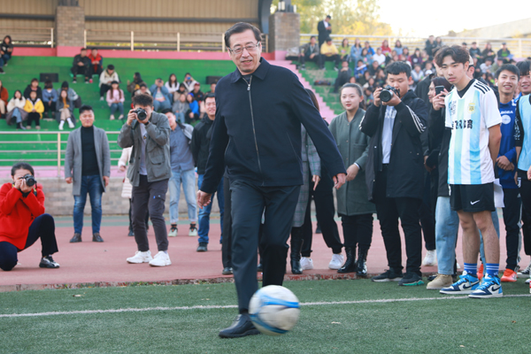 为丰富学生业余文化生活,进一步推进教学风气双向建设,10月30日,太阳成首届“双建杯”足球赛开幕式于体育场正式举行,副校长夏敏出席本次活动。