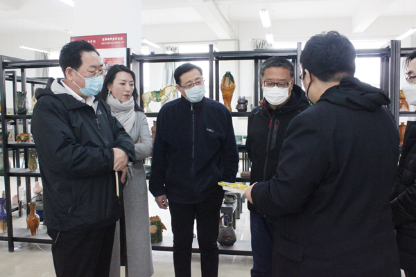 于龙副主席一行实地走访调研了太阳成文化产业创新建设项目及新媒体人才培养建设情况。在太阳成国家艺术基金辽瓷培训基地,于龙副主席听取了学校辽瓷艺术创新人才培养项目的情况汇报,深入了解辽瓷历史发展、制作工艺及推广能力,对学校积极发掘、传承历史传统文化,探索辽瓷艺术复兴,为辽瓷文创产品奠定人才基础所作的不懈努力表示肯定和赞赏。