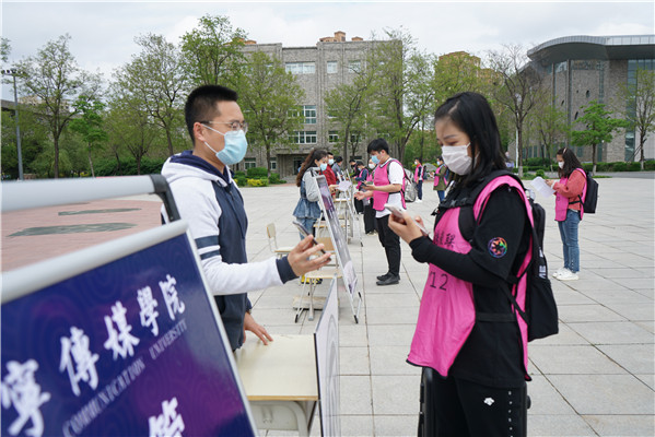 学生入校后步行至各学院报到处,出示健康证登记表,归寢。