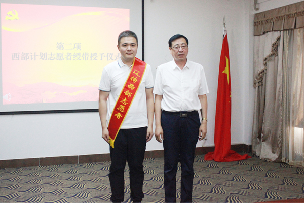 会上,夏敏副校长为西部计划志愿者张泽仑同学授予“辽传西部计划志愿者”绶带,对其表示祝贺。