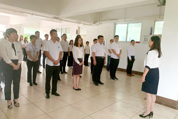 新学期,行政教辅开展本学期第一次晨训,全体人员以饱满的热情合唱校歌,齐声念诵晨训词,凝聚起昂扬向上的团队精神。副校长徐颖表示,行政人员假期中仍然坚守岗位,新学期伊始更要以崭新的面貌投入到工作中。她总结了假期期间各部门的工作成绩,号召全体人员再接再厉,常做常新,讲求效率,为促进学校健康发展而努力奋斗。