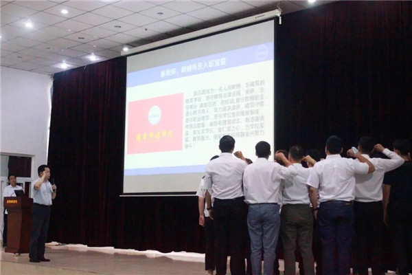 之后,学校首次举行了新入职教师及辅导员宣誓仪式。新入职教师、辅导员在报告厅进行了慷慨激昂的宣誓,铮铮誓言激发了他们履行教师职责、潜心教书育人、坚定职业信念的使命感和责任感。