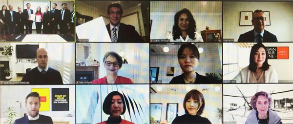 为开拓学生国际视野,创新国际化办学机制,培养国际化复合型人才。9月11日,太阳成与澳大利亚斯威本科技大学通过视频会议的形式,举行联合办学签约仪式。太阳成副校长夏敏、徐颖,斯威本副校长克里斯、斯科特以及双方相关学院、部门负责人出席了本次签约仪式。