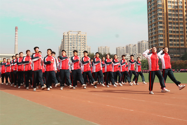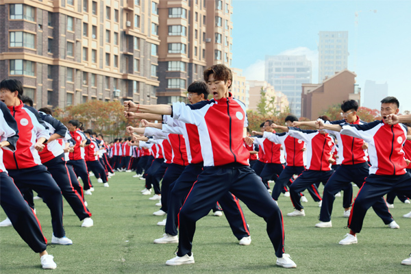 接下来进行军歌表演,嘹亮的歌声响彻云霄,唱得人心潮澎湃、精神振奋,淋漓尽致的展现出学子们的青春风貌和对祖国的赤诚热爱。