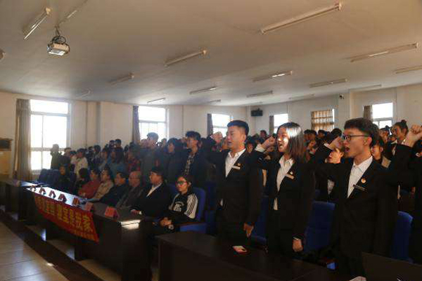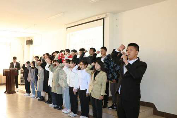 党员积极分子及各班级干部代表宣誓“我要做全优寝室,我能做全优寝室”。全场学生集体起立,举起右拳,一起唱响“我要做全优寝室,我能做全优寝室”。