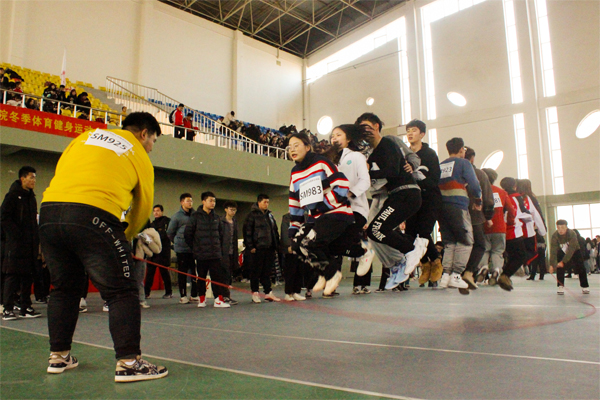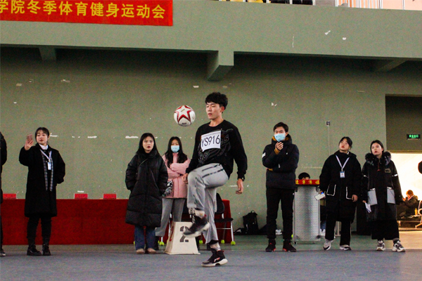 运动会上进行了足球颠球、双人短绳、集体长绳、多人连续踢毽子等项目。师生们走出教室,青春飞扬,奋勇拼搏,享受体育运动带来的快乐,国际教育学院的留学生们也加入进来,和同学们同场比拼,现场趣味横生、紧张激烈,掀起了冬季体育锻炼的热潮。