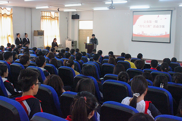 会上,校团委负责人刁松峰介绍了第一期“青马工程”培训班基本情况以及课程安排。第一期“青马工程”培训班经过校团委、各二级学院团总支推选,学员共计35人,按推荐团组织分为7个小组,每组5人,根据课程安排开展分组讨论学习。