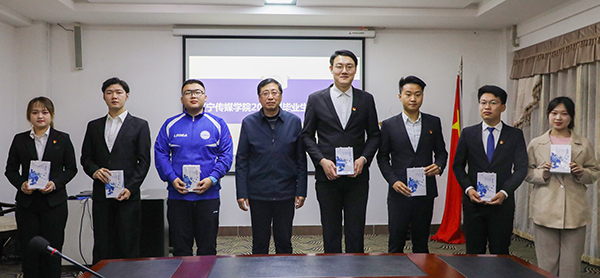 夏敏副校长代表学校为毕业生代表颁发纪念品并合影留念,送去属于母校的关注与祝福。
