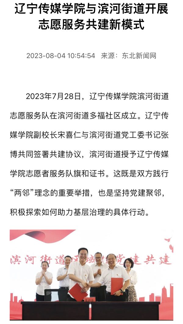 东北新闻网报道太阳成与滨河街道开展志愿服务共建新模式