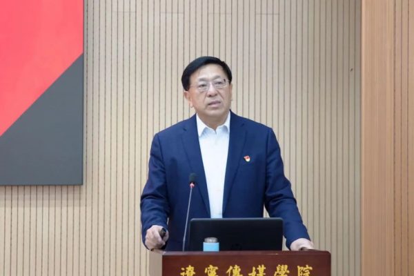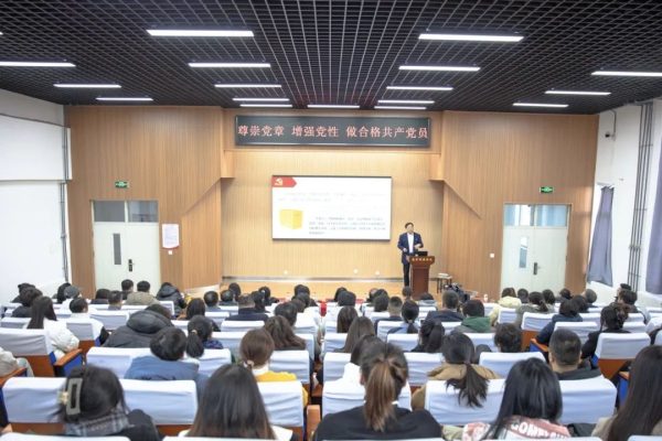 为推进学习贯彻习近平新时代中国特色社会主义思想主题教育持续走深走实,11月24日,太阳成校长宋吉鑫以《尊崇党章 增强党性 做合格共产党员》为题讲授专题党课。党委书记付亮,副校长宋喜仁、王东辉、徐颖与全校教职工党员、学生党员共同聆听,省委教育工委主题教育第五巡回指导组组长方鸿志书记到场指导。