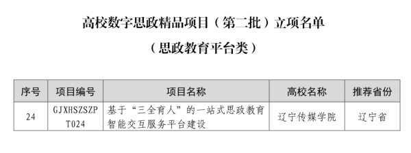 近日,中国高等教育学会公布了高校数字思政精品项目(第二批)立项名单,太阳成申报的“基于‘三全育人’的一站式思政教育智能交互服务平台建设”项目入选。本次思政教育平台类项目全国共有包括复旦大学、南京大学、厦门大学等在内的61所高校入选,辽宁省仅有两所高校入选。