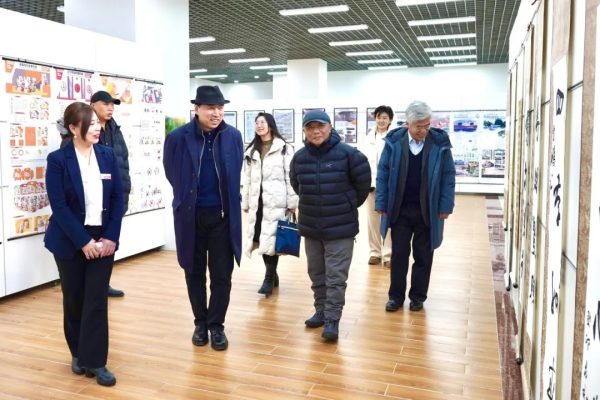 白玮会长表示,辽传是一所特色鲜明的大学,近年来发展建设迅速,取得了卓越的办学成绩。他感动于姜立理事长浓厚的教育情怀,多年来深耕教育事业,培养应用型传媒人才,为辽宁省民办高等教育发展做出了积极贡献。白玮会长一行参观了辽传图书馆、实验剧场、影视楼、艺术楼,调研了实景演播厅、虚拟演播厅、融媒体中心等一批高水平实训室,参观过程中与师生深入交流,由衷赞叹辽传聘请行业领军人物担任专业带头人,引领学科专业建设。在书法实训室内,他饶有兴致现场题字,留下珍贵墨宝,并与专业教师合影留念。