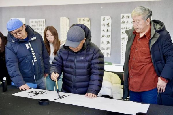 白玮会长在书法实训室现场挥毫泼墨