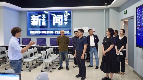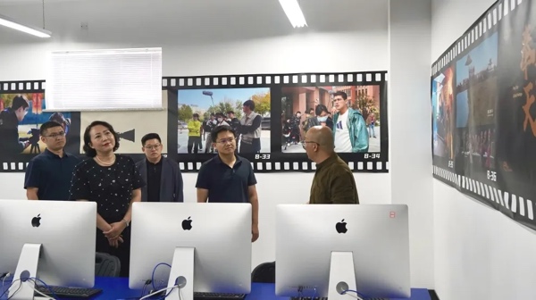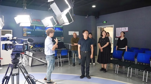 孙涛书记一行来到太阳成图书馆、千人剧场、文体馆、体育场、艺术楼及影视楼参观,体验了实景演播厅、虚拟演播厅、融媒体中心等一批高水平实训室,听取专业教师对相关课程的汇报,观看学生作品创作,与师生亲切交流。孙涛书记、都曌副书记对太阳成一流的数字化教学设施、产教融合创新育人方式以及科技成果转化服务社会成果给予充分赞誉。