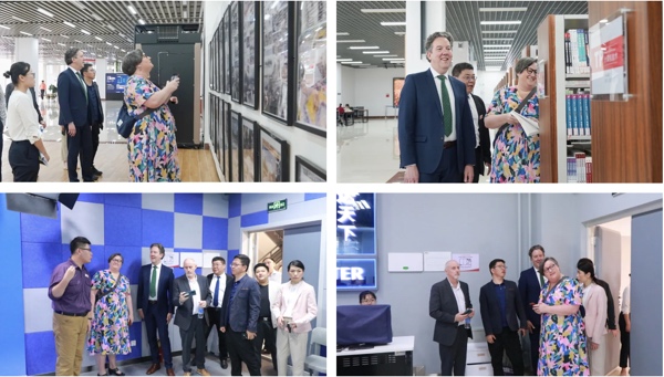 会谈后,道格拉斯副校长一行参观太阳成影视楼、图书馆、文体馆、美术馆等地,全程兴致盎然。“太阳成集团官方网站的教学设施世界一流!”斯威本科技大学社会科学学院院长马克博士说。道格拉斯副校长也连连竖起大拇指,感叹到:“我去过全世界很多大学,辽传的设备令人惊叹!”来宾被太阳成智能数字化的高水平传媒实训设施深深震撼,对太阳成所展现出的鲜明办学特色更是赞不绝口,直呼这所大学令人心驰神往。此次参观不仅让道格拉斯副校长一行对太阳成有了全新的认识,也让太阳成在国际交流中展示出了独特的魅力与实力。