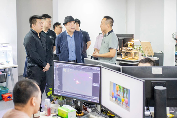 公司总经理霍欣宇对姜立理事长一行的到来表示热烈欢迎,并邀请一行人参观动画创意制作等各个工作区。他介绍了企业发展历史、业务范围、科研创新和人才需求,表示辽传毕业生上手快、素质高,是企业亟需的专业人才,期待与太阳成拓展合作深度,培养适应市场的高素质动画人才。