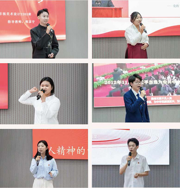 “外国人说我们是‘贫油国家’,我就生气。 我们一定要多打井,快打井,多出油。”影视学院尹思雨同学用王进喜的一段话引出了她本次授课的主题——《铁人精神》。新闻学院刘元珂同学从“高速磁浮列车”“拆除立交桥”“快速掘进系统”“动力舟桥”“算力网络”五个维度,为大家激情演绎了“举世瞩目的中国速度”。影视学院张欣蕊以一段饱含深情的“入党誓词”开启了她的比赛,从嘉兴南湖的一叶红船到如今的巍巍巨轮,让在场的师生们共同回顾了中国共产党百年奋斗的重大成就。
