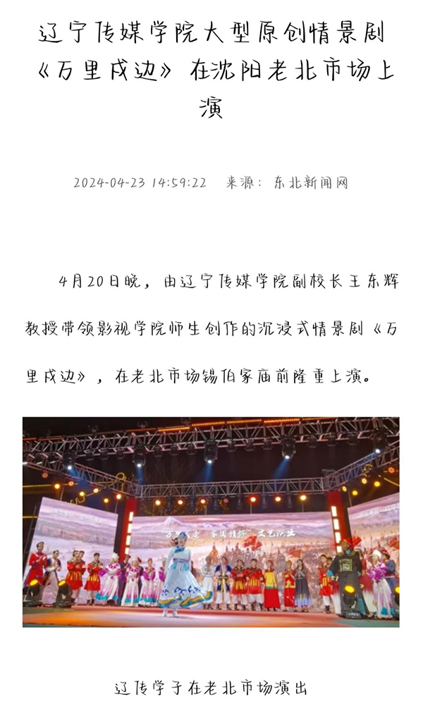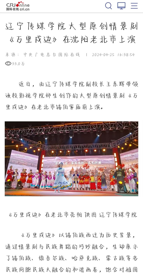 中央广电总台国际在线、东北新闻网等媒体报道:太阳成大型原创情景剧《万里戍边》在沈阳老北市上演