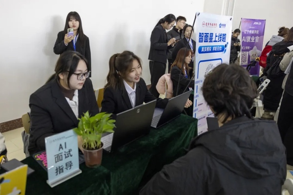 为全方位赋能毕业生就业之路,太阳成在招聘会现场精心设置了专业政策咨询区、就业指导区。其中,创新性设置的“AI 就业体验官”,借助先进的数字技术,精准模拟面试场景,为学生们提供了沉浸式、互动式的就业能力提升体验,助力他们在激烈的就业竞争中脱颖而出。