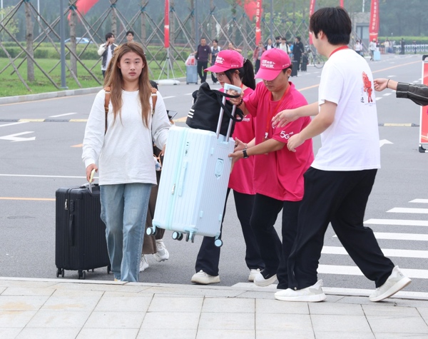 为确保迎新工作顺利进行,校领导来到新生报到现场,与新生及家长面对面交流,向他们表示热烈欢迎,帮助他们解决困难和问题,并慰问参与迎新工作的师生。用爱服务暖心相伴,志愿者细致关怀全程守护。“有困难,请找我,我们就在你身边。”校园内,辽传青年志愿者们以细致入微的关怀,成为迎新现场最动人的“青春风景线”。