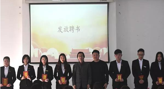 会议的最后,请出城市设计学院王惠宁院长和校团委金秋实书记为青春志愿服务队的干部成员颁发聘书。