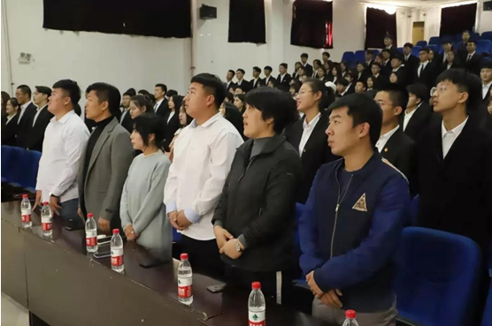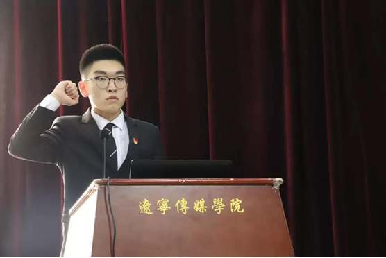 学生会主席刘昕炎带领大家宣誓,在场同学全体起立,举右手握拳放于右耳边,跟随学生会主席念读宣誓词,场面庄严肃穆。