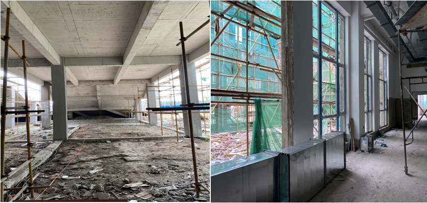 本次北校区实践调研过程中,学生个个充满激情,紧随教师围绕图书馆的内庭进行勘察和拍照,认真做好记录。通过老师的实地讲解,学生明白了绘制的图纸与现实建筑之间的对应关系,学到很多施工现场实践的知识,增添了学生学习环境景观设计的兴趣和信心,提升了整体课堂教学的质量。
