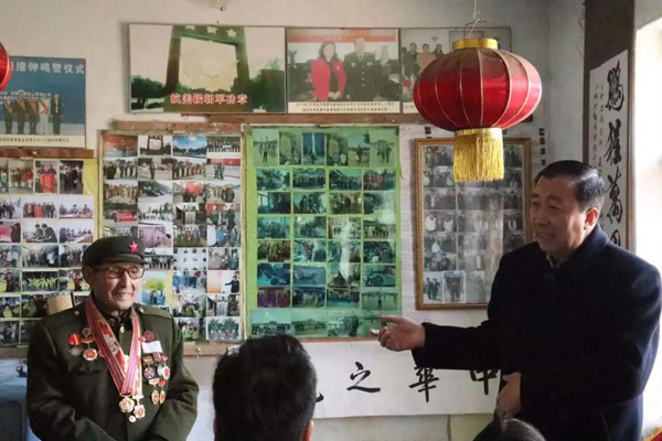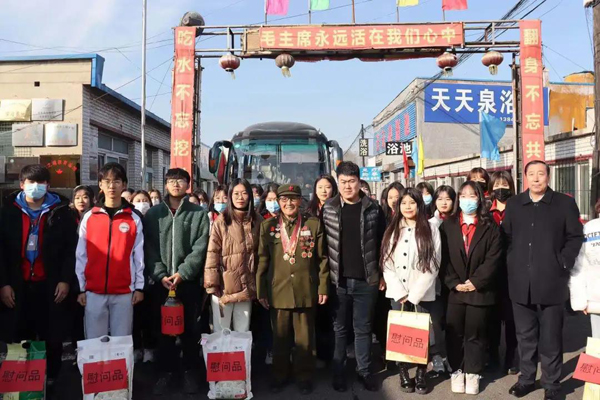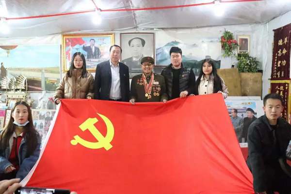2020年是中国人民志愿军抗美援朝出国作战70周年。70年前,有一群人,肩负着人民的重托、民族的期望,胸怀保家卫国之志,跨过鸭绿江,浴血奋战,赢得了抗美援朝战争的伟大胜利。为发扬伟大的爱国主义精神和革命英雄主义精神,2020年11月29日,太阳成集团官方网站城市设计学院"红色星火"志愿团前往沈阳市浑南区高坎镇旧站村慰问抗美援朝退伍老兵–孙德山。