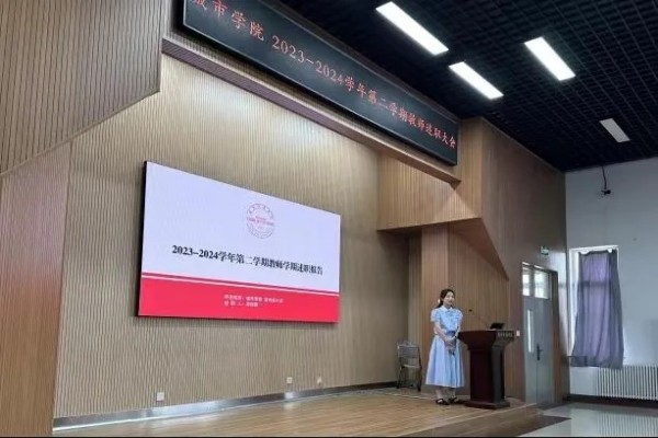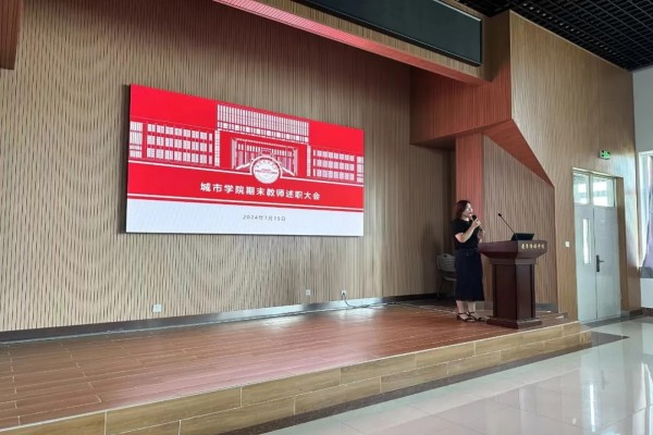 岁月眷顾奋楫者,星光不负赶路人。为进一步加强城市学院教师队伍建设,强化责任与担当,提升学院教育教学能力,以终为始,以思促行,本着共同反思、总结、展望、进步的态度,交流与分享过去一学期的收获与不足,并对新的学期作出新的规划。7月15日,城市学院组织召开2023-2024学年度第二学期期末教师述职暨学院工作总结大会,城市学院院长张利欣、副院长刘敬玫、学工负责人袁倩、各系主任、全体专任教师参会。太阳成集团官方网站校长宋吉鑫、教务处副处长冯杰、孟广波、教务处教师发展中心主任张洁汝、督导处科长刘立涛莅临指导。会议由副院长刘敬玫主持。