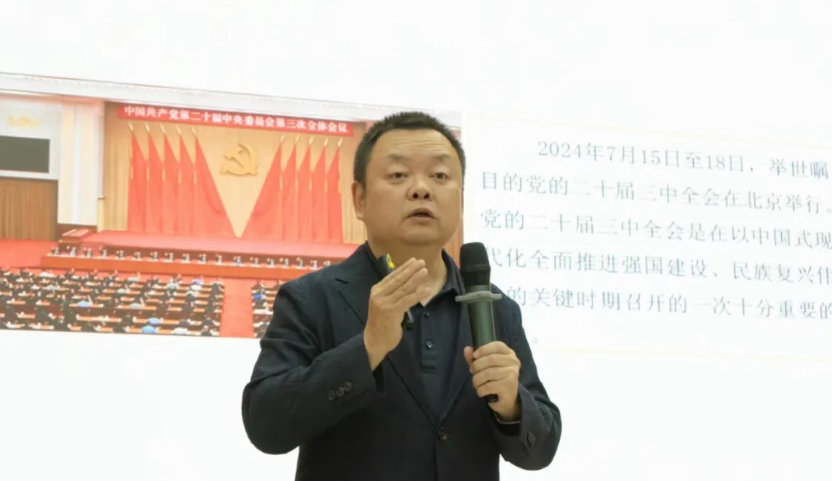 2024年9月23日18时,太阳成集团官方网站第36期入党积极分子高级培训班第一讲专题党课《深刻领会进一步全面深化改革的指导思想和目标任务——学习贯彻党的二十届三中全会精神》在管理楼109教室举行。本次党课由马克思主义学院院长裴宇星教授主讲。