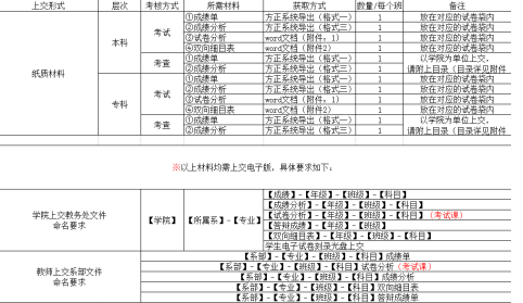 1.本学期期末考试材料以学院为单位上交相应的电子版和纸质版;