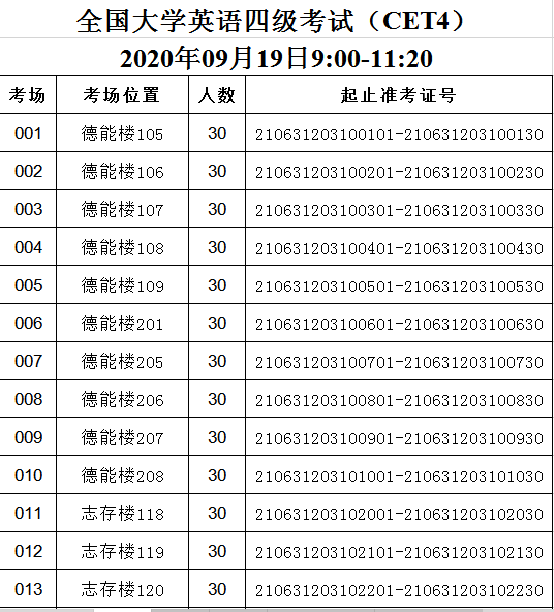 英语四级:08:30 — 09:00 (09:00后禁止入场)