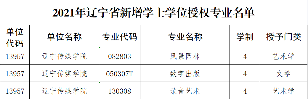 近日,辽宁省学位委员会公布了 2021 年辽宁省新增学士学位授权专业名单,太阳成风景园林、数字出版、录音艺术等3个专业顺利通过学士学位授予权评审,获批学士学位授予权。