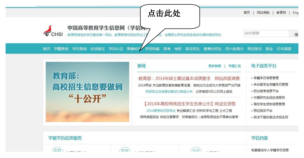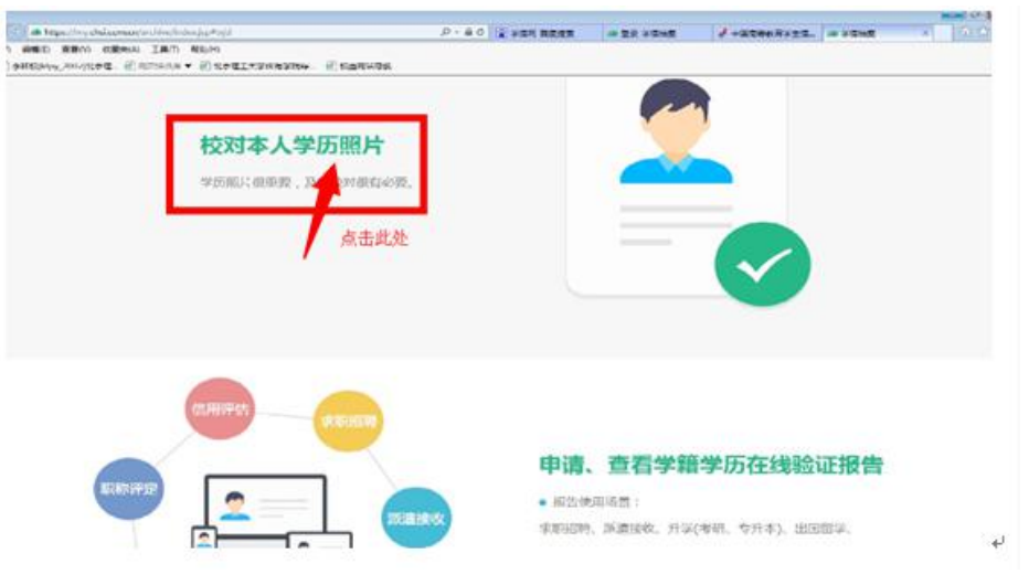1、进入中国高等教育学生信息网(网址 www.chsi.com.cn),点击 “图像校对”。