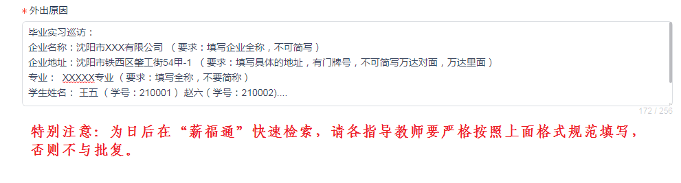5.各二级学院外出实习巡访教师需要按照《员工手册》要求在薪福通上做外出申请,并经二级学院院长审批后转派至教务处任志华老师审核,教务处审核合格后报校长批准。(特别提醒:按人事处要求,外出申请必需要在外出发生的5个自然日内完成所有审批流程方可。)
