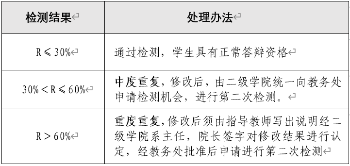 1.检测结果以维普论文检测报告为准,合格标准要求全文总相似比不得高于30%,评选优秀论文全文总相似比不得超过20%。