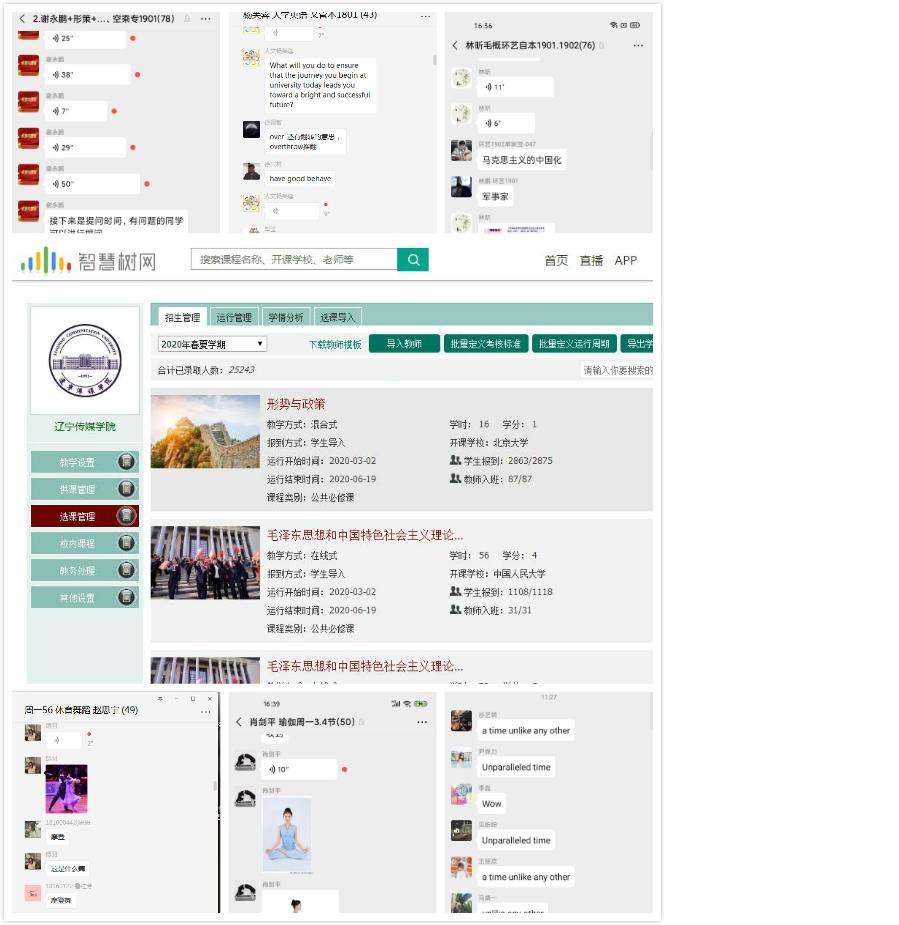 教师们把这次&ldquo;危机&rdquo;转化成提高信息化教学能力，促进课堂教学改革与创新的良好机遇，为在线教学带来了新的气象，表现出很强的敬业精神。为了上好线上教学第一课，教师们认真备课、积极探索，展现出在线教学的独特优势。马克思主义学院教师谢永鹏在特殊时期，利用有效载体、营造浓厚氛围、砥砺爱国奋进，开启了2020年春季学期疫情防控期间《形势与政策》课程在线教学的序幕，深受学生们欢迎。人文社科学院教师武芳采用多元化的方式和手段，耐心解答，激发同学们从不同视角思考，给同学们上了本学期的&quot;精彩首课&quot;!</p>