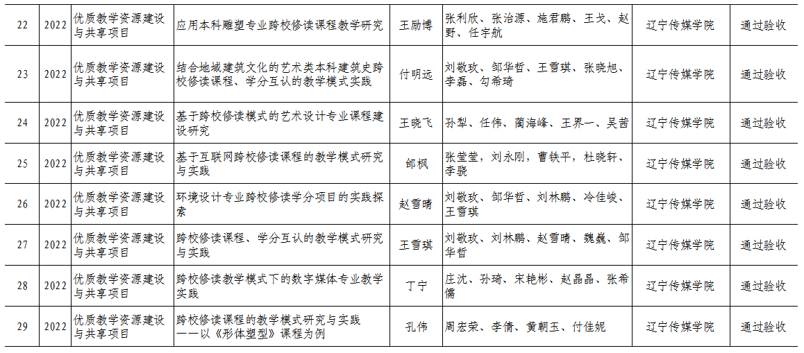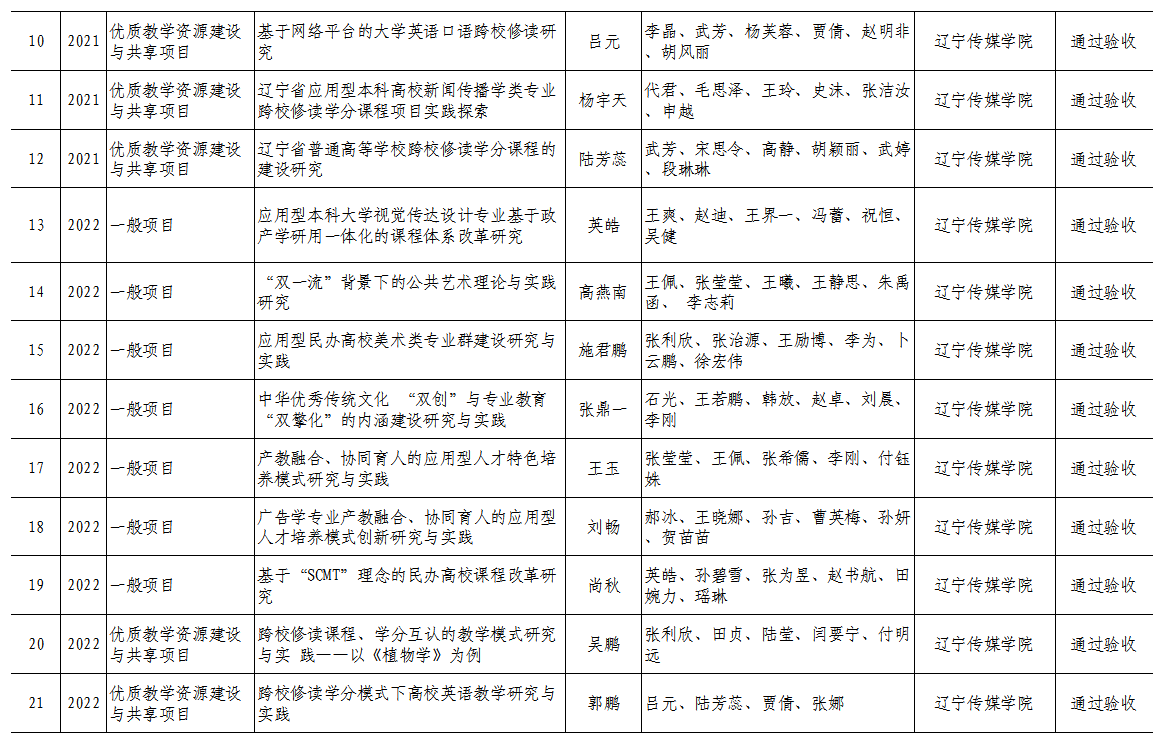 关于2021、2022年辽宁省普通本科教改研究项目结题验收通过名单的公示