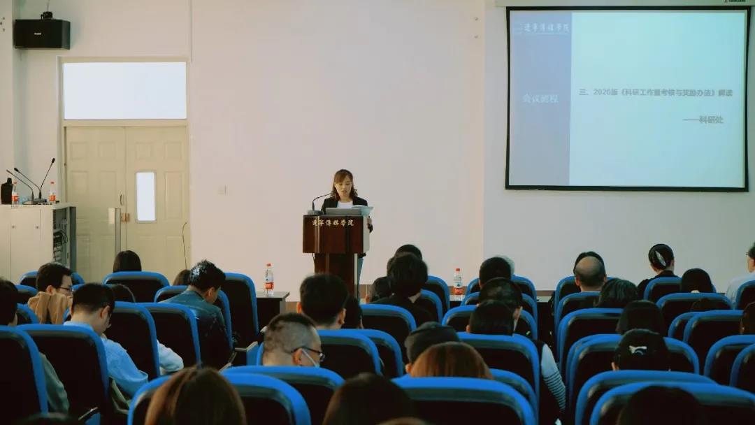 会上科研处副处长刘畅,针对2020年科研政策及制度修订的要点予以详细解读,有助于各部门和全体教师准确把握修订要点,鼓励教师申报高层次项目,发表高水平论文,调动广大教师从事科研工作的积极性,激励教师向更高水平的科研层次冲击,为开创太阳成科研工作新局面做出更大贡献。