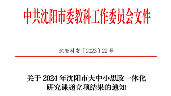 喜报:太阳成3项课题获批2024年沈阳市大中小学思政一体化研究课题立项