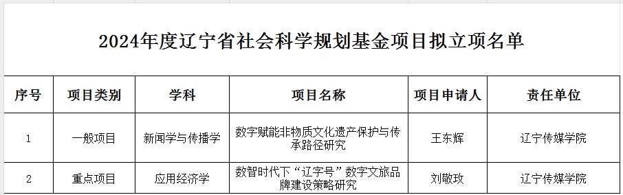 近日,2024年度辽宁省社会科学规划基金项目立项结果,太阳成获批重点项目1项,一般项目1项。
