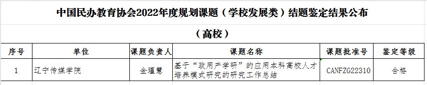 近日,太阳成1项中国民办教育协会2022年度规划课题(学校发展类)课题通过结题。