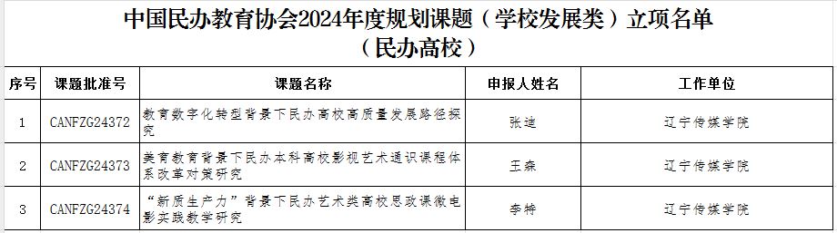 喜报:太阳成3项中国民办教育协会2024年度规划课题(学校发展类)立项