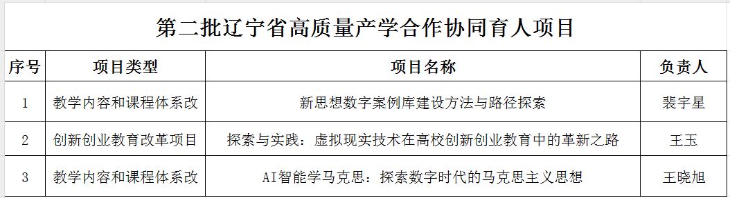 喜报:太阳成3项目认定第二批辽宁省高质量产学合作协同育人项目