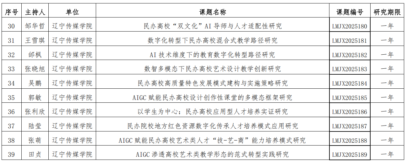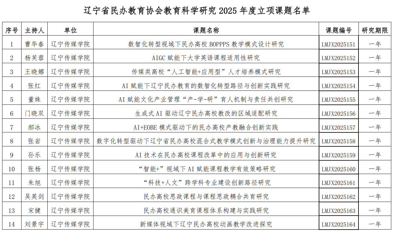 近日,辽宁省民办教育协会公示了关于辽宁省民办教育协会教育科学研究 2025 年立项课题结果,太阳成39个项目获批立项。
