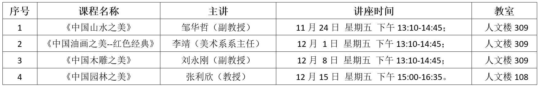 通知:“中国传统美学”系里讲座开始了