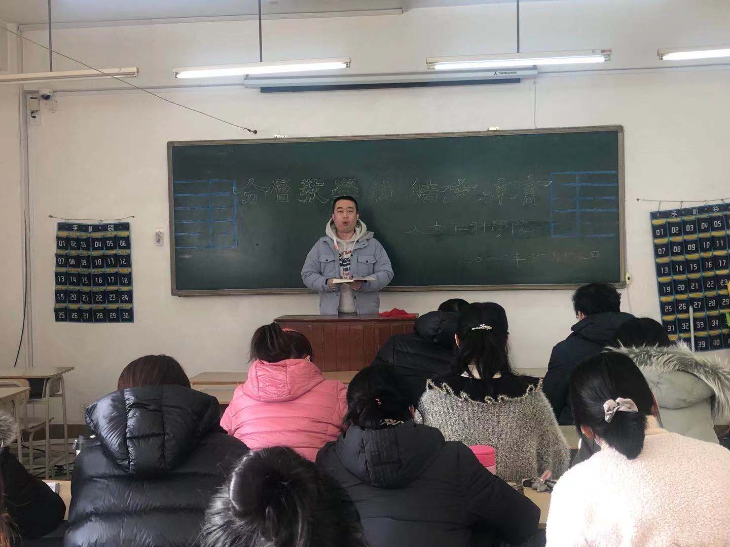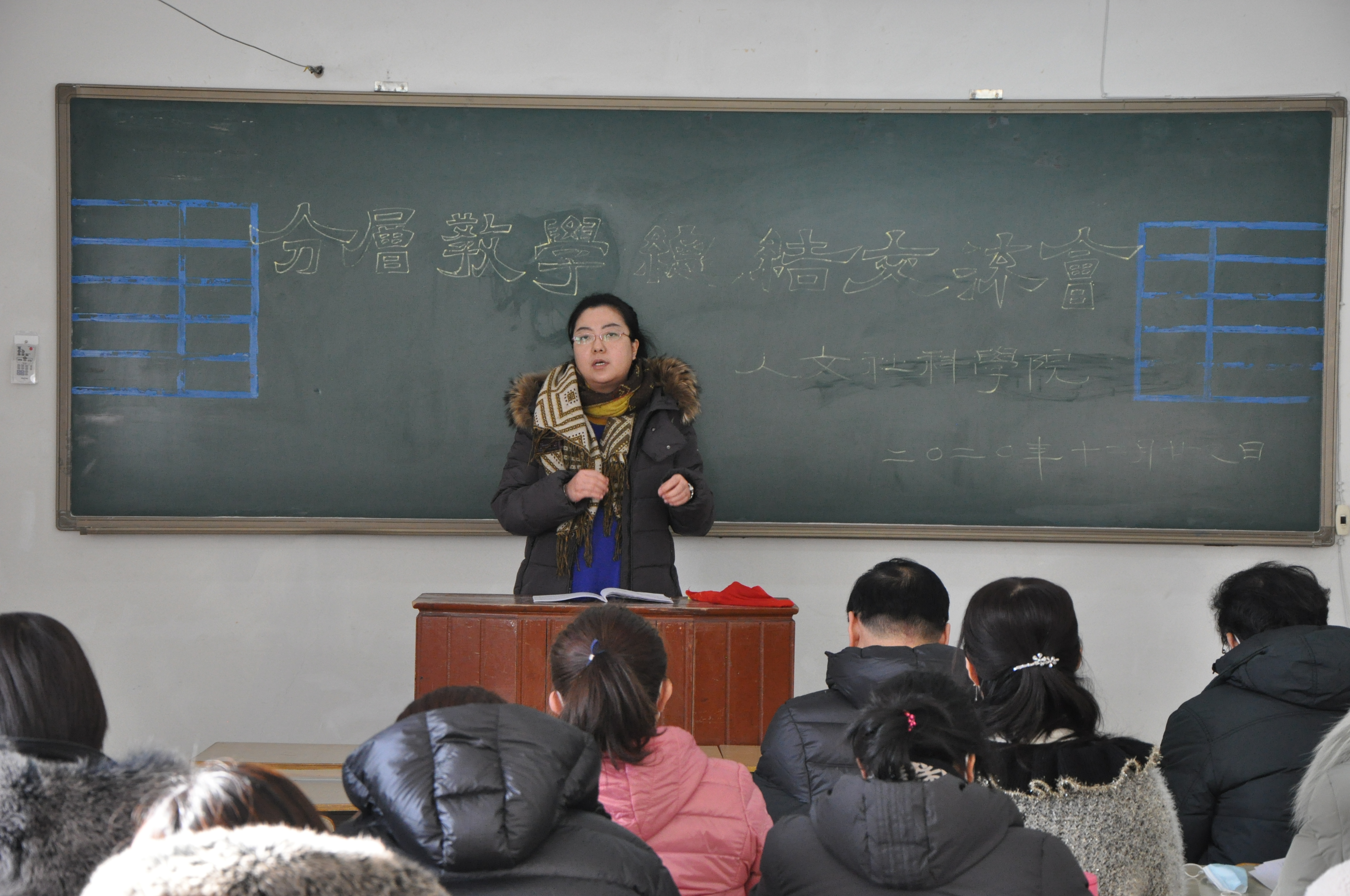 12月29日上午,人文社科学院全体英语教师在志存楼217教室召开了“分层教学总结交流会”。夏敏副校长到会指导,吕元主任主持会议,12名任课教师总结和交流了这一学期的英语分层教学的做法和经验。